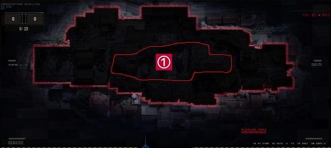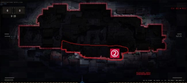 ここが味方陣地の場合、敵がくることは少ないのでケアパッケージを呼ぶ場所としても活用できる。