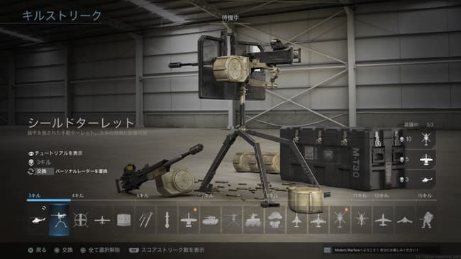 COD MWのキルストリークはパーソナルレーダー、シールドターレット、カウンターUAV、UAV、ケアパッケージ、クラスターストライク、巡航ミサイル、エアストライク、歩兵戦闘車、セントリーガン、ウィールソン、緊急救援物資、