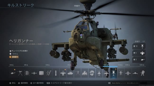 COD MWのヘリガンナーはターレットと空対地ミサイルを装備した戦闘ヘリだ。