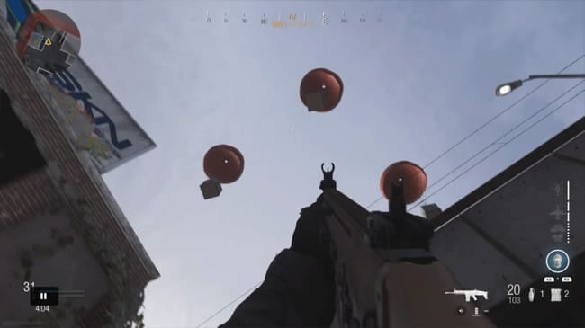爆弾を投げるとその時点に青い煙が出て、その場所にケアパッケージが投下され、約13秒後に到着する。