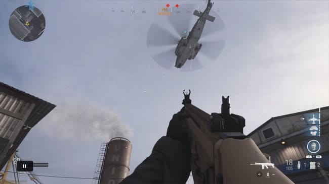 COD MWのサポートヘリはターレット2門を搭載した戦闘ヘリがマップ上をパトロールする。