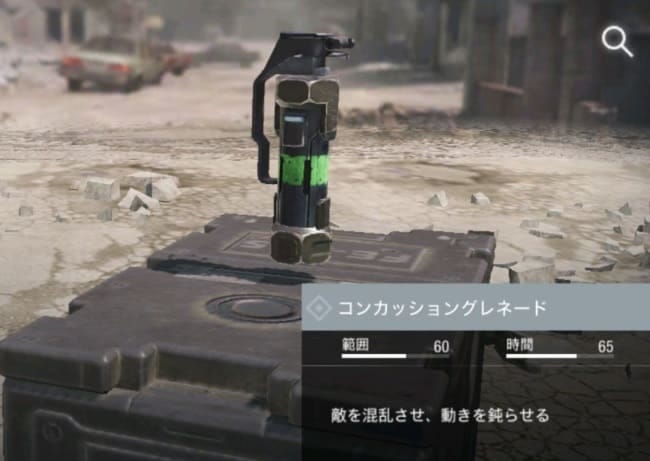 CODモバイルのコンカッショングレネードは敵の移動速度と回転速度を低下させることができる。コンカッショングレネードが当たった位置にもよるが、最大で約3秒程度は動きを止められる。