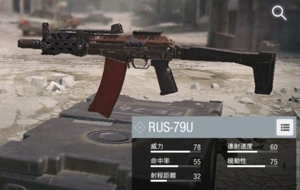 CODモバイルのRUS-79Uは、低威力だが高めのレートを持つサブマシンガンだ。表記されている性能は以下の通り。