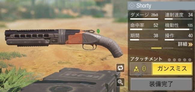 Shortyは近距離戦で使うことがほとんどで、レートは低く、反動軽減のアタッチメントをつける意義はほとんどない。