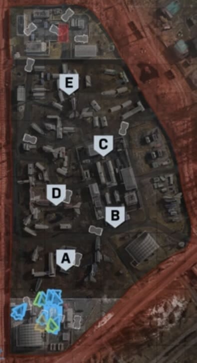 B・C地点付近はマップ構造がCOD MW2のScrapyardそっくりであり、経験者であれば有利に戦いやすい。